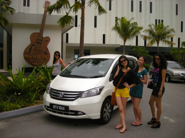 The girls with the Honda Freed outside Hard Rock Hotel Penang.