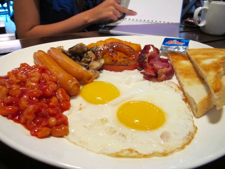 Big Breakfast [RM20] – Two sunny side up eggs, grilled pork sausages, (pork) bacon, baked beans, saute’ mushrooms, grilled tomatoes hash browns with bread toast and butter. Just nice for big eaters like me!