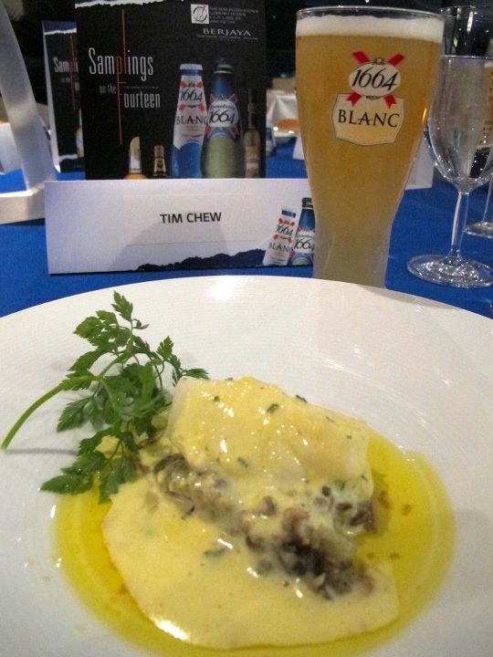 A photo with MHB's Stephanie Lim and the Kronenbourg girls outside the restaurantTried to recreate it with MHB's Zoey using portrait instead of landscapeNice view of KL city from Samplings on the Fourteen on the 14th floor of the Berjaya Times Square HotelThe menu for the night!A chef preparing the food. Now it was an open kitchen so we got to see the food being made before our eyes!To start off the night it was the Pan Fried Foie Gras. Now I can never say no to foie gras and this was done to perfection with it's earthy flavours complemented with......the Savanna Dry Cider which offered a sweet, sour and refreshing taste which served to perk up my tastebuds! (too much foie gras can be a bit 'jelat' but the crisp flavours of the cider cut right through the richness!)Cappuccino! No not the coffee as this one is Savanna Dry Cider infused Porcini mushroom! Now this is definitely not your ordinary mushroom soup! The sweet and sour taste of the cider paired with the earthy mushroom flavour was a match made in heaven! I could have drank a whole litre of this but I had to save some space for the dishes to comePoached Black Cod served with lentils and potatoes. Ok the real name is too long and I'm lazy! Super fresh fish smothered in a delicious cream sauce made and paired with the......the Kronenbourg 1664 Blanc! Now I usually prefer the Kronenbourg 1664 lager (green bottle) over the Blanc but in this case I must admit that the Blanc's fruity flavours went really well with the cod!