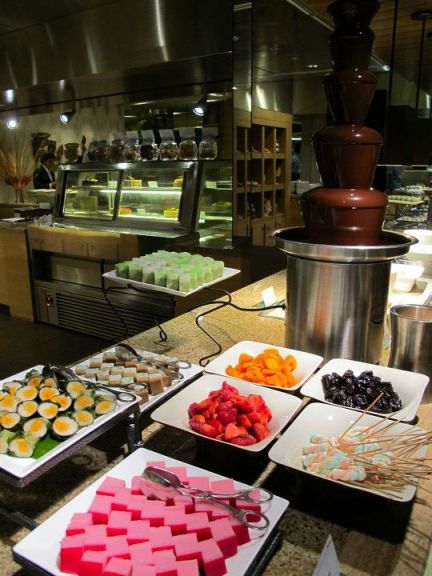 In the al fresco dining area is the BBQ! Pick whatever fresh meat such as beef, lamb, chicken, quail and sausages or seafood such as crabs, prawns, fish and sotong and the chef will grill it for you. Alternatively you can go straight for the roast lamb and potatoes.I liked that the featured a Middle Eastern food section as I quite enjoy the kebabs and hummus. Also available are traditional Middle Eastern entrees such as kebab halla, chicken sharkassia and veal blanket.Not forgetting a marvelous spread of local fare which includes Malay, Chinese and Indian dishesChef Raymond and his pride and joy - the organic salad station! Super healthy without compromising on taste.Food is prepared right before your eyes like this chef making cookies for us! Yes you read it correctly! Cookies made on the spot! Literally oven fresh!The dessert section was like a small piece of heaven on earth. There's something for everyone here.Sinful sinful sinful!!!