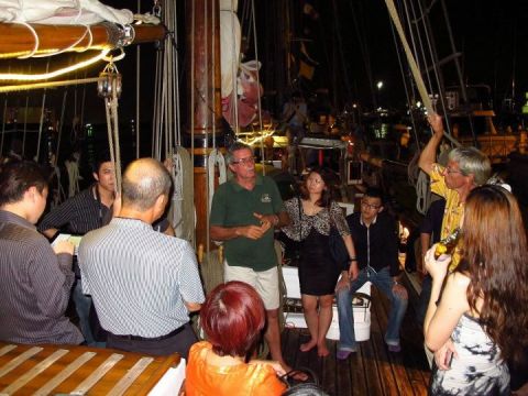 Currently embarked on a career of missions of mercy, carrying cargos of donated medical and educational supplies on the South East monsoon to isolated island communities in East Timor and Indonesia, the H.V. Vega visits Singapore, Malaysia, and Thailand gathering donated supplies for the people on these island. Captain Granger and his lovely wife told us some stories about their visits to the island where it’s inhabitants are so poor it’s really very heartbreaking.