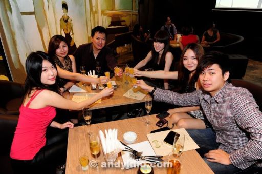 The minimalistic yet stylish bar area which housed the high tables and chairs. The shutters were pulled halfway down as it was a closed event.The sofa area which is great for chilling with your buddies over some cocktails or your favourite GAB beerWilee with her prosecco which is Italian sparking white wineVivian with one of the numerous cocktails we triedSo good you have to close your eyes!Chicken Wings with Peanut Butter Glaze (somewhat similar to satay sauce but follows the Balinese style more than our local Malaysian style). The chicken was very crispy while the sauce complemented it with a sweet and rich flavour.A bar staple - Chicken Wings with BBQ Glaze. I shamelessly licked my fingers clean after eating these. Yes I loved the BBQ sauce.On the left is the Cheese and Beef Bacon Stuffed Portobello Mushrooms while on the right is the Crispy Spring Rolls - filled with spinash and emmental cheese and served with a tomato concasse. Definitely not your ordinary popiah goreng!Cajun Potato Wedges with Cheese Dip - these go fantastic with a glass of draught beer or stoutGarlic Bread topped with Blue Cheese - now I'm a true cheese fan and I can eat any cheese from goat's cheese to blue cheese so I thoroughly enjoyed this one.Lamb and Olive Balls served with a tangy tomato sauce and a fresh zesty garlic sauce. At the back is the French Fries with Garlic Mayonaise. I will definitely order this one when I'm back there in the future. Love the garlic mayonaise and it goes well with the crispy french fries!Soft Shell Crab served with a chilli sauce. I can never say no to soft shell crab and this one was pretty good!Another bar staple - Deep Fried Calamari aka Sotong Goreng! Eat while crispy.Bruschetta with mediterannean onion toppingBruschetta with mushroom garlic toppingThis was one of the unique signature cocktails - Dragon Tattoo - ABSOLUT Vanilia, dragon fruit and vanilla syrupDesperado - Patron Silver, fresh mangostine, and elderflower syrupCheers!!!With Stephanie who recently returned from Japan. Check out her hair!Girls doing what they do best with a cameraWilee, Pearl, Stephanie, Rachel and Vivian
