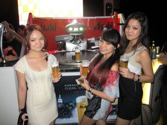 A pretty girl and ice-cold pints of Asahi draught welcoming me at the door. What a good way to start the event!Chermaine Poo was the host for the event and she impressed the Japanese representatives from Asahi (Japan) by fluently speaking Japanese!The ballroom of the hotel was transformed into a club!MHB's Rachel, Ashley and LouiseIntroducing Mr. Asahi! Mr. Asahi, the world’s first robotic barman, is the brainchild of Japanese brewer Asahi and is capable of serving people in less than two minutes, saving the average person 13 minutes at the bar. Capable of pulling 300ml pints and opening bottles, Mr. Asahi can serve up to 16 half pints or bottles at a time.I luv the girls' uniform!A little info on Asahi - Asahi means Rising Sun. Karakuchi is a unique brewing method using a special yeast strain. And the added adjective ‘Super’ is to reinforce the beer’s crispness. Asahi Super Dry is Japan’s first Karakuchi (dry) beer – the No. 1 in Japan, the No. 1 Japanese beer in the world, and one of the world’s fastest growing premium Asian beers. Introduced in 1987, Asahi Super Dry, packaged with a metallic exterior/casing, boasts a unique Karakuchi style that is clean, crisp, refreshing with no bitterness.I definitely had a good time at the event hahaha!