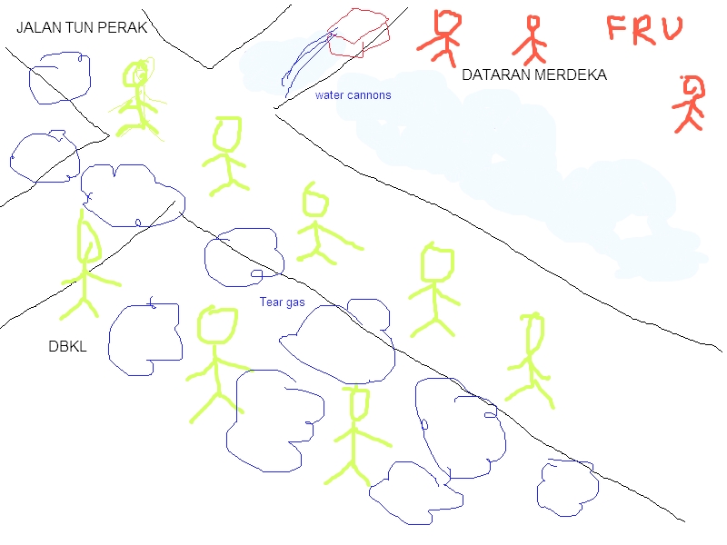 Now here’s a crude illustration of the tear gas attack. Sorry for the rudimentary drawing. Those of you who play ‘Draw Something’ with me know how bad I am at drawing hehehe!