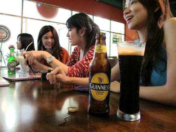 Lavinier Coffee is located on the floor between PappaRich and Old Town White Coffee and can be seen from the main road. There are nice chairs and sofas outside for those of you who prefer al-fresco dining or want to smokeThe inside is warmly lit and has a cozy ambiance about itEmma, Johanna, Chammaine, Louise, Sarah and ElaineComfy dining tablesFor you coffee and tea loversAnd a bar for those who need something strongerAn ice-cold beer for me to start off the night! Carlsberg bottle – RM10.00 (Happy Hours) and RM12.50 nett (normal hours). Buy 4 free 1 during happy hours.While Chammaine preferred the Java Chip Frappe – RM11.00Johanna went for a Vanilla Cream Frappe – RM11.00Sarah with her Pina Colada – white rum, pineapple juice and coconut creamSarah also had a fresh fruit juice combination of mango, pineapple and strawberry – RM8.00 – a healthy choice! You can also choose a single juice – Orange, Apple, Guava, Lychee, Lime, or Pineapple – RM6.00Sandy is one of the few girls I know who can drink Guinness Foreign Extra Stout – RM13.00 (Happy Hour) or RM16.00 (normal hours)The girls didn’t want to have coffee at night in case they couldn’t sleep so I tried this Peppermint Mocha – RM10.00. It was strong and flavourful with a hint of peppermint while the foam was delicate. I shall return for more coffee the next time I’m in Publika.Pita bread with 4 types of dips – hummus, ajvar, eggplant, and tzatziki