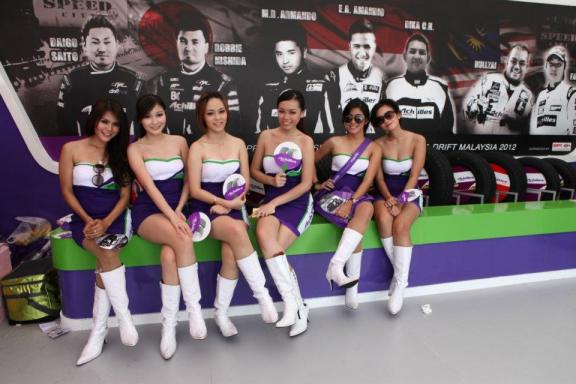 There was plenty of eye-candy aroundThe skies weren’t bright and sunny for long but the girls seemed prepared!This year’s event saw the drivers contend against the weather, in addition to each other in the tandem battles, with the rain adding an element of unpredictability that proved to be too much for some. It saw local ace Ser Ming Hui, aka ‘Ah Fai’, from Achilles Drift Team Malaysia crashing out in the round of 16 against Indonesia’s Dika CH, despite entering today’s competition as the second seed. However the positive impact of the rain was a great show for the spectators who braved the showers with umbrellas and rain-coats! I was hiding from the rain in the comfy air-conditioned VIP tent though…Tengku Djan, who led the Malaysian contingent by qualifying to the round of 32 with the highest score of 94 out of 100 in the first rounds, showed a clear indication of the quality of Malaysian drivers. Seven Malaysians made it to the round of 16, with the likes of Ivan Lau of Achilles Drift Team and Ee Yoong Chern of GT Radial joining Tengku Djan in the quarterfinals.But I was getting quite distracted from the raceDatuk Wira SM Faisal Tan Sri SM Nasimuddin – NAZA Group of Companies Joint Group Executive Chairman with Edward Mamahit – PT Multistrada Senior International Marketing ManagerDatuk Maruan Mohd Said – NAZA Quest Sdn Bhd Chief Operating Officer, Datuk Wira SM Faisal Tan Sri SM Nasimuddin – NAZA Group of Companies Joint Group Executive Chairman, and Edward Mamahit – PT Multistrada Senior International Marketing Manager