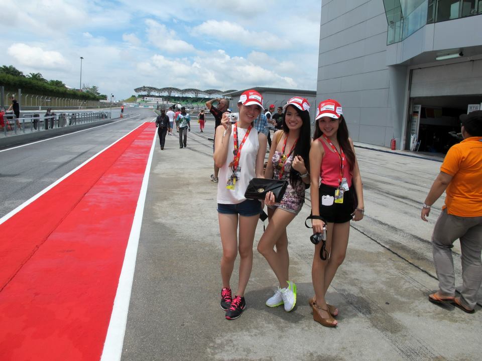 Povy and Stephanie with Datin Jane who arrived late and had to wolf down her breakfastWe made our way down to SIC in a bus which allowed me to take a quick nap (hate waking up early in the morning) and finally we got to the paddock and made our way up to the M-Scape Lounge! Here’s the lovely Moon Young and her colleague on hand to greet us.We helped ourselves to food and drinks while watching the practise and qualifying rounds in the comfort of the Marlboro M-Scape Lounge #likeabossValentino Rossi aka ‘The Doctor’ from the Ducati team made an appearanceAnd the ‘Doctor’ autographed some merchanside which were later given out in a lucky drawThere were also some interactive games for us to play to win some cool keychainsAnd the X2 2-seater Ducati which is pretty similar to the real one used in the race except that it has 2 seats instead of 1.All the time there were hot girls looking after usIn between the practise and qualifying sessions we headed down to the pits for a pit walk