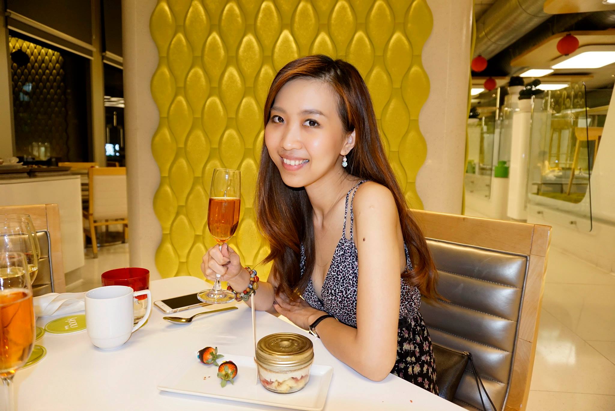 I’m really not a dessert person but I really couldn’t stop eating this one until my partner in crime stopped me. The ginger white chocolate trifle (in the little jar) with its layers of cream, fruit and sponge cake was really delicious, had hints of white chocolate and ginger, and surprisingly was not overly sweet. Girls though will undoubtedly enjoy the pair of chocolate dipped strawberries on the side. This dessert paired well with the Sparkling Tahuna Rose from New Zealand which imparted its soft, aromatic and fruity flavours to balance out the dessert.