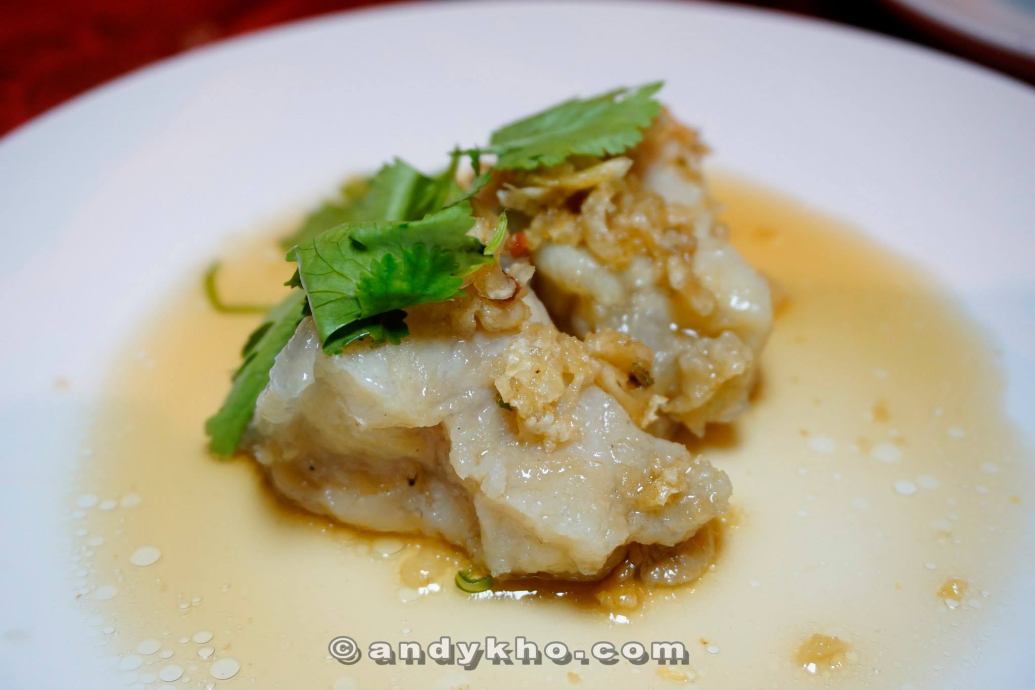 Fresh and tender slices of garoupa with a light soya sauce and topped with parsley for some freshness!