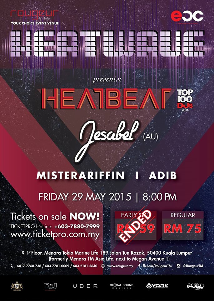 Get ready to party this 29 May as Heatwave hits Rougeur in Kuala Lumpur featuring headliner Heatbeat and Australian EDM queen Jesabel.