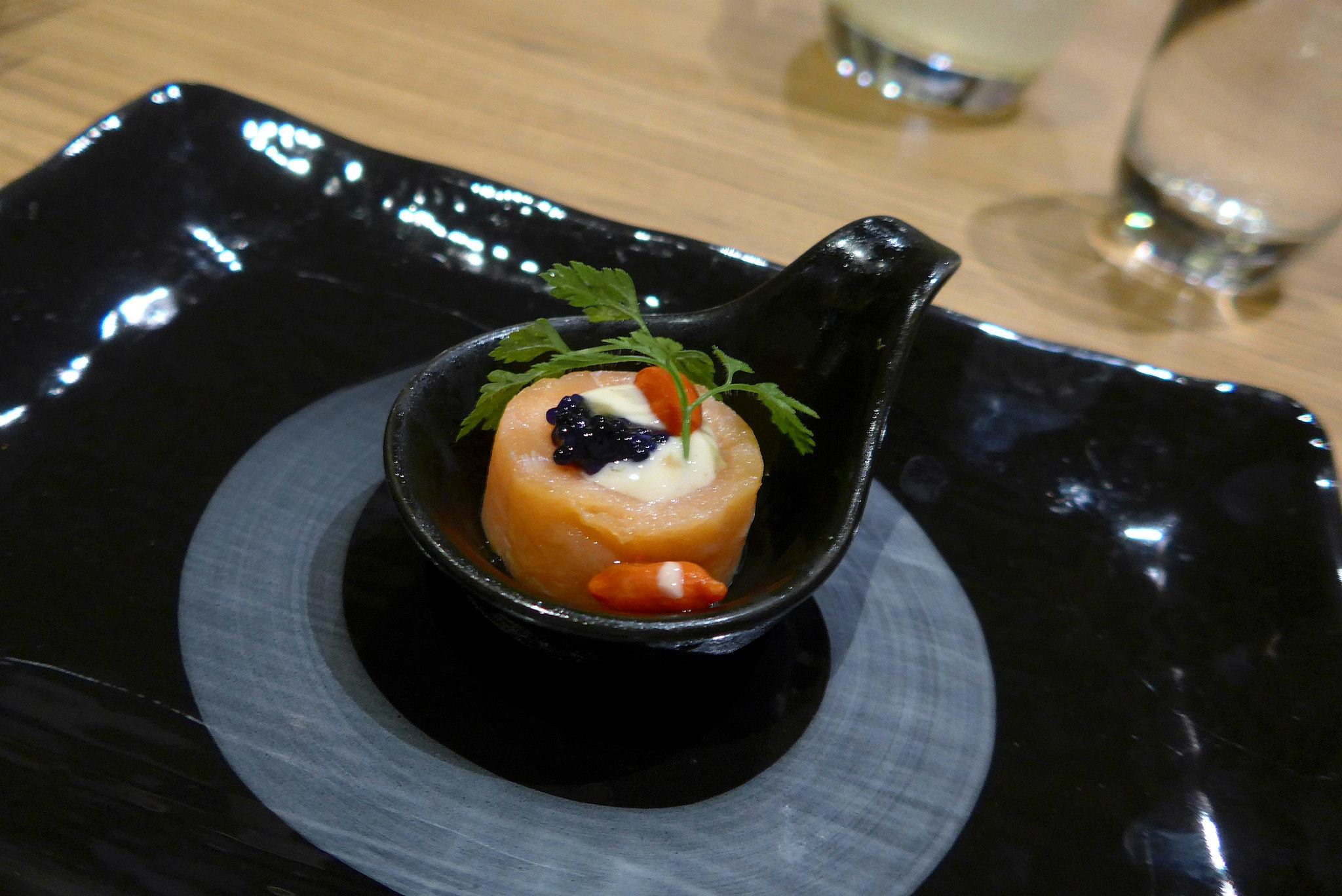 This is where Chef Fong’s expertise really comes into play. At first glance it looks like a double boiled Chinese soup with a wantan but in actual fact it is a consomme which is the European style of making a clear soup using egg whites to remove the fat and sediments. Very technical and not easy at all. Really sweet and nice and the best part was the dumpling which was packed with flavourful chicken meat that simply bursts with flavours when you bite into it. The gold leaf added a touch of opulence to the dish.