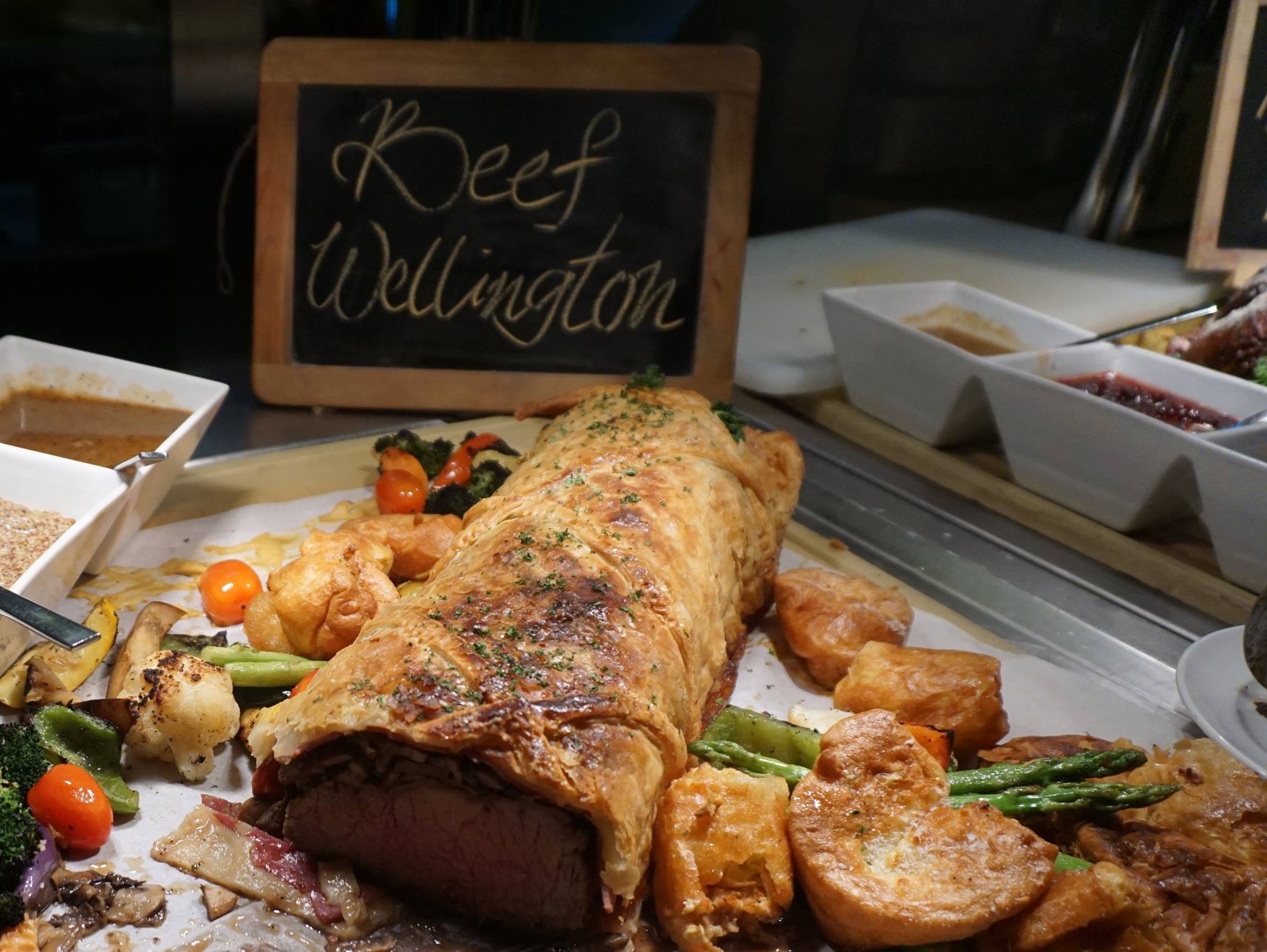 - Roasted Australian prime rib with Yorkshire pudding, horseradish sauce, roasted potato and light mustard jus