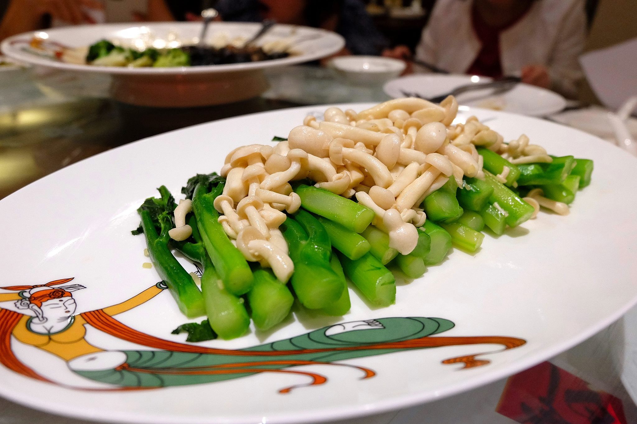 Stir-fried Hong Kong kai lan, wild mushroom