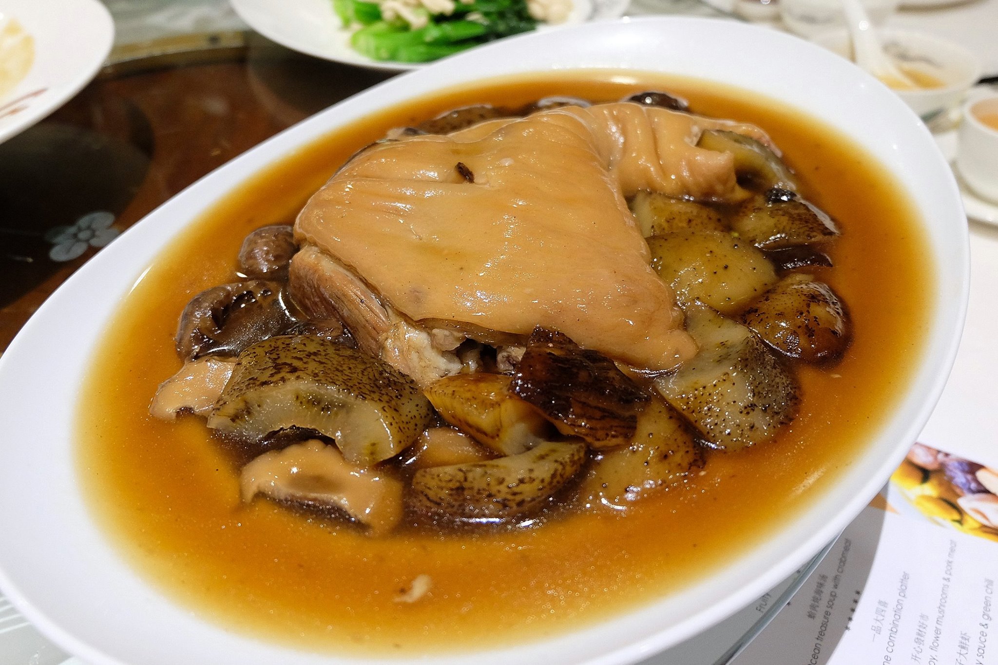 Braised pork knuckle, fresh mushroom & sea cucumber