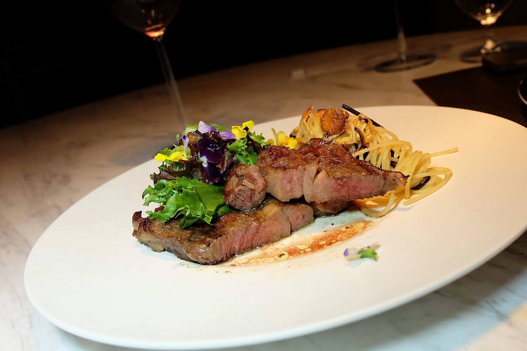 This was definitely the star of the night! A beautiful melt in the mouth and perfectly cooked to medium rare super tender cut of beef which needed absolutely no sauce! I really didn’t care about the rest of the ingredients on the plate and attacked the beef. It’s certainly not cheap but neither is a cut of Wagyu with Marbling level 9! Heavenly! (The side salad and pasta was nice too but who thinks of that when you’re enjoying wagyu beef?)