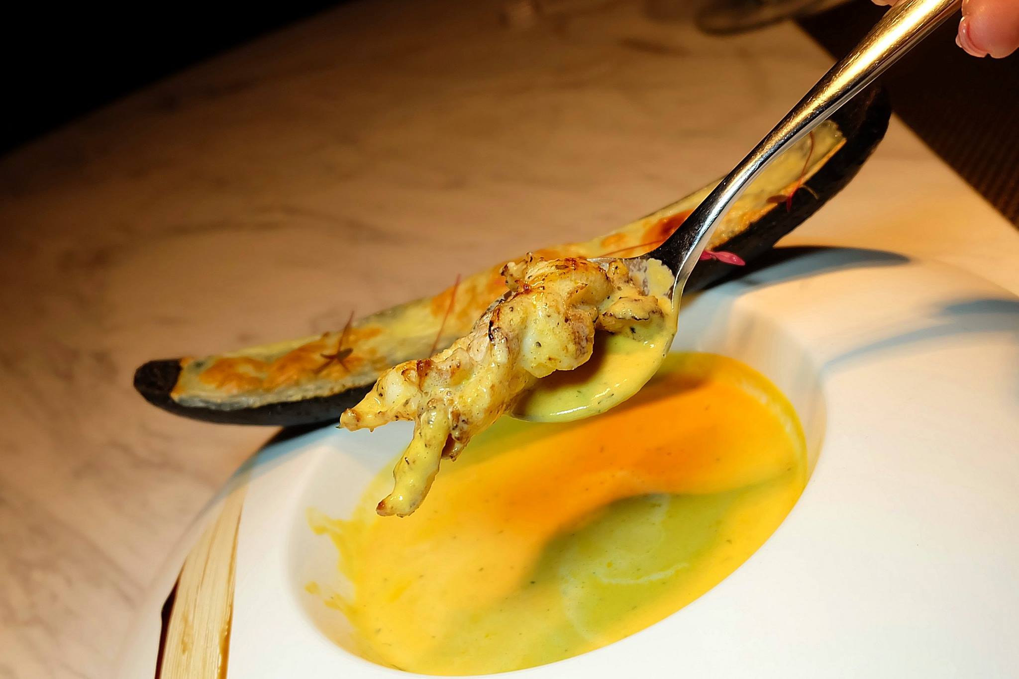 This was quite a pretty appetizer! The fresh seafood flavours went delightfully well with the coulis and mango while the dollop of caviar on the side added a touch of luxury! In this dish, you could really taste the quality ingredients and we marvelled at the technique required to put this dish together.