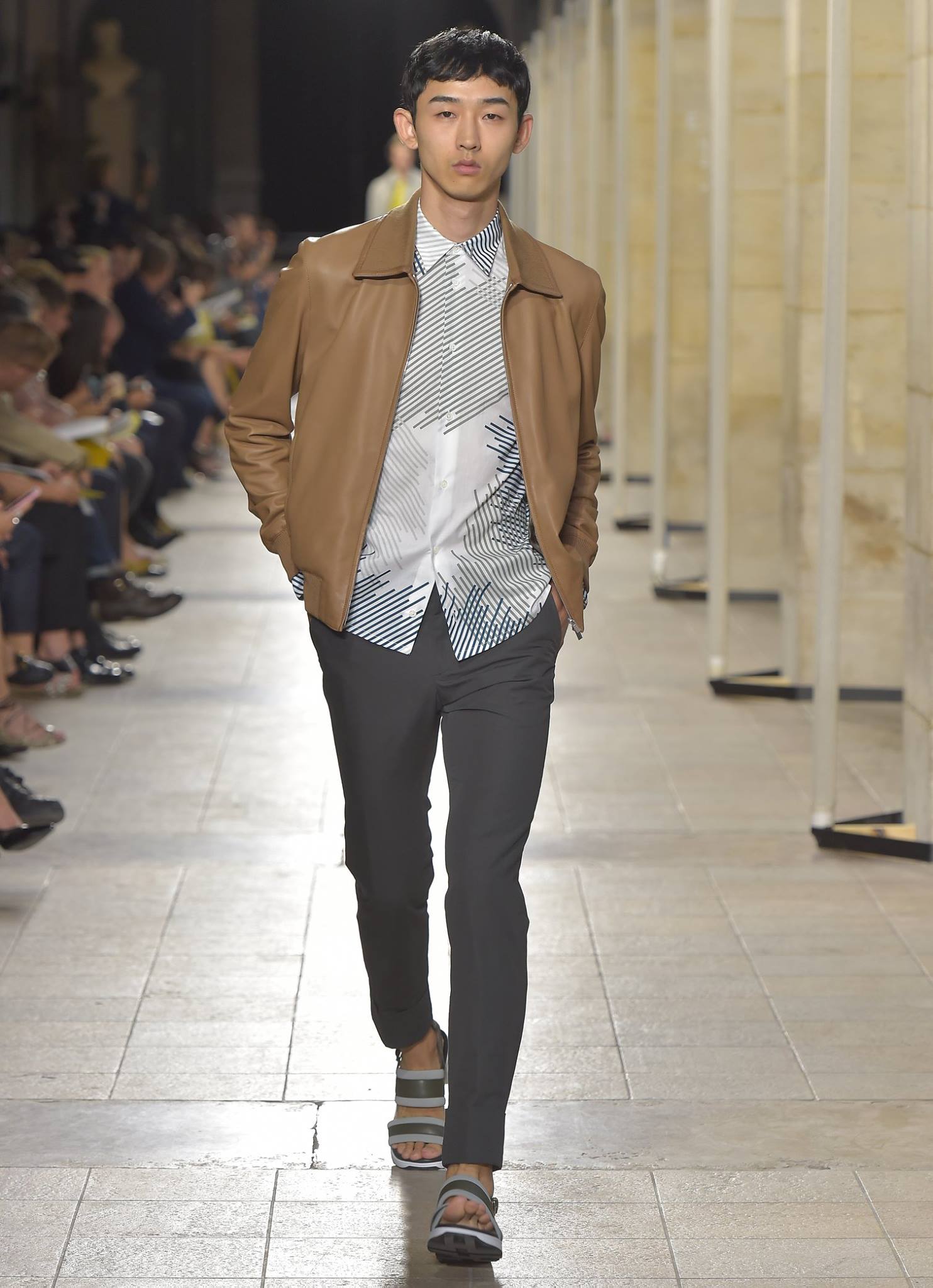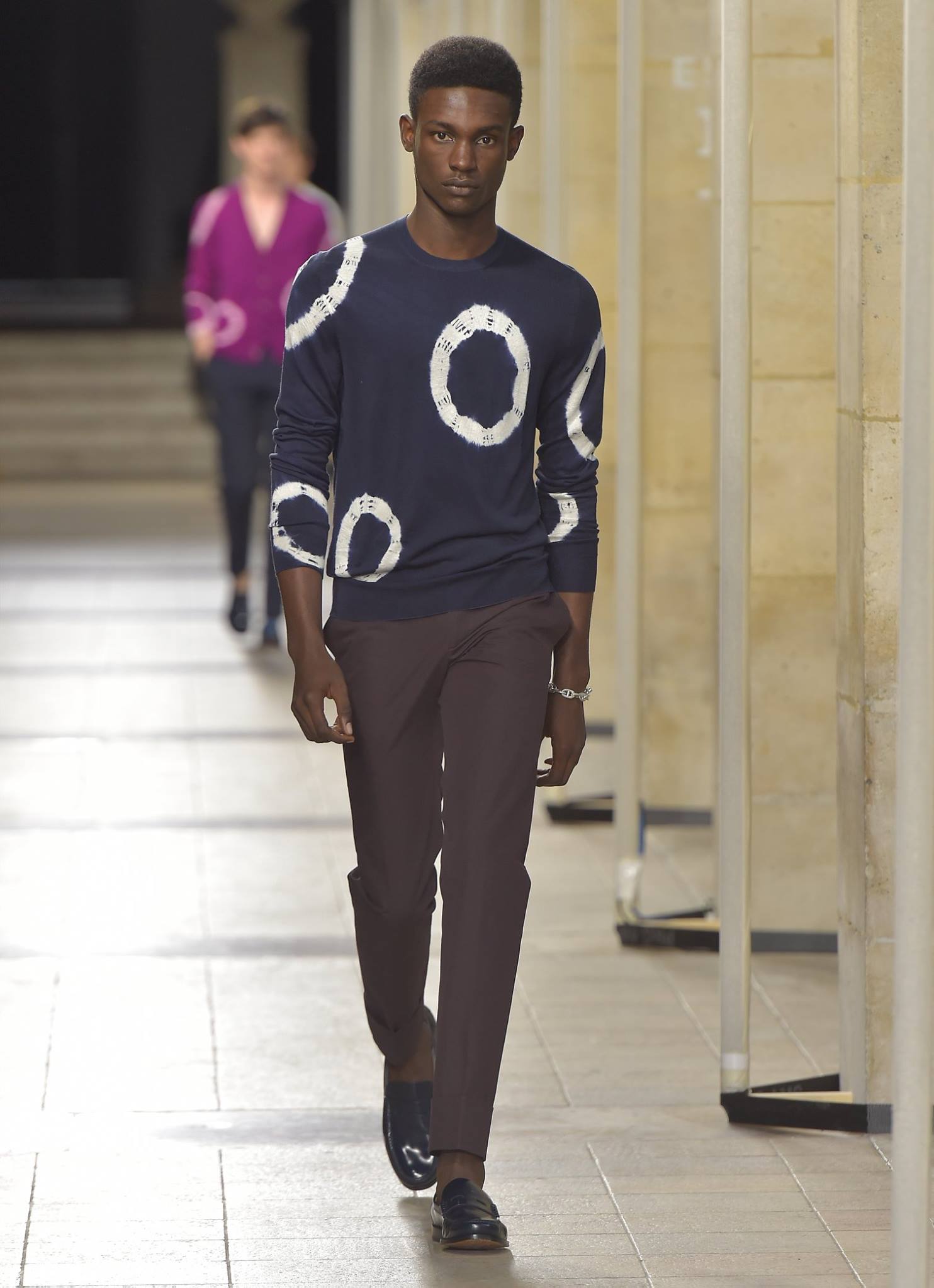 The Hermes Spring Summer 2017 men’s collection features an assortment of lightness and colour euphoria, with playful overlapping, changing effects, micro-patterns, and tie-dye. Predominant colours include sulfur yellow, silex, natural, cobalt blue, navy, white, mahogany, baobab, and Tyrian pink.