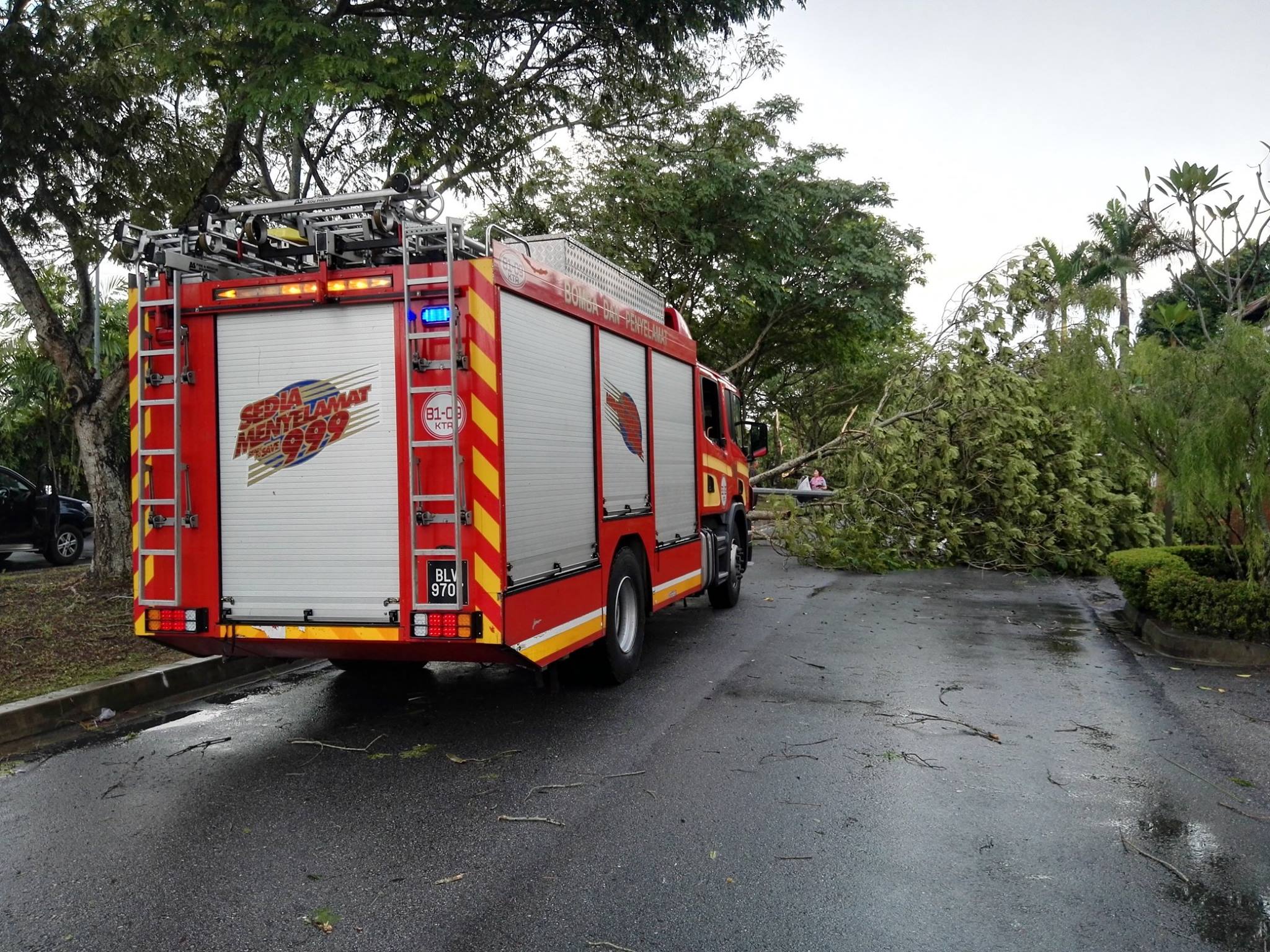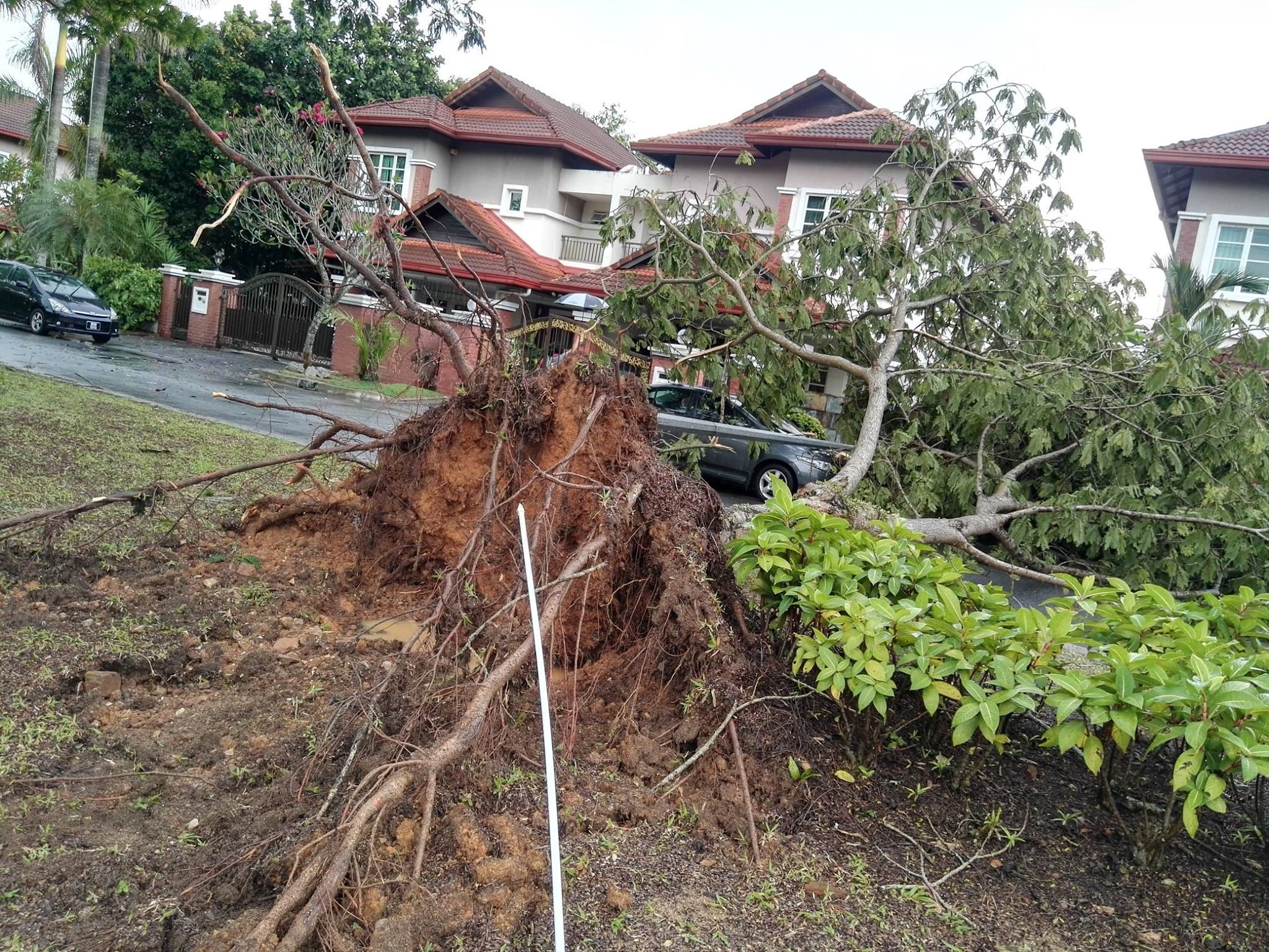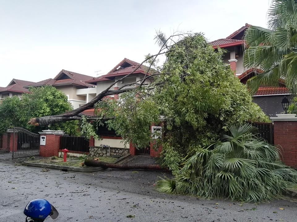 The scene of devastation along Jalan Tropicana Utama and Jalan TR 9/2 and 9/6 in Tropicana Golf & Country Resort, Petaling Jaya, Selangor was quite a spectacle. Residents came out of their homes to survey the damage while the fire brigade and Tropicana’s Polis Bantuan were on scene to assist. Thank God that no one was hurt in all the carnage which resulted from a massive thunder and lightning storm.