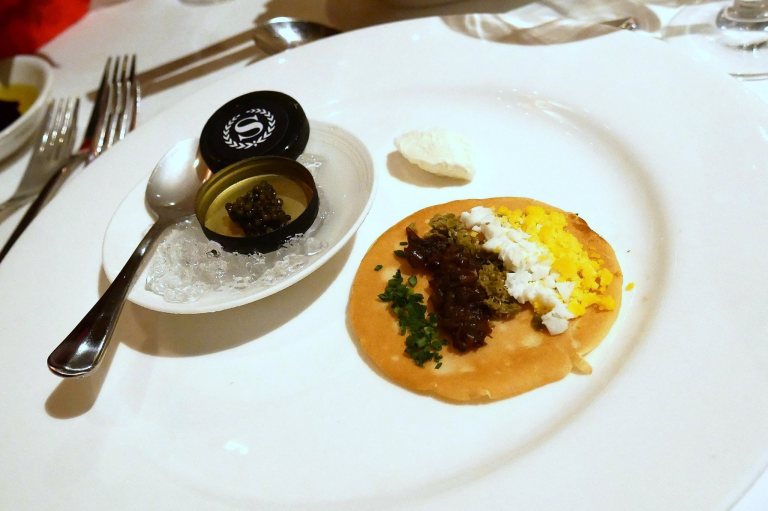 Kaviari Caviar and Blinis served with Traditional Condiments