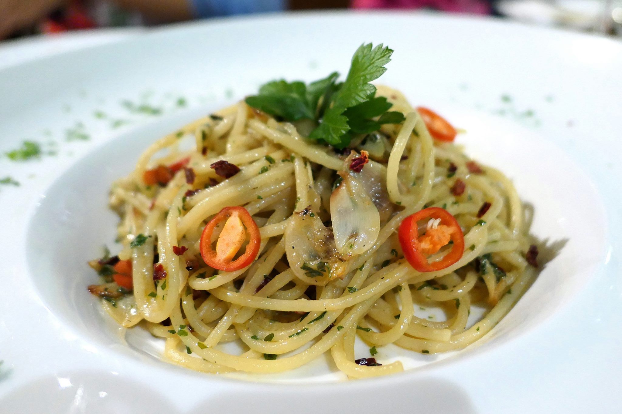 Spaghetti with garlic, chili, parsley & extra virgin olive oil