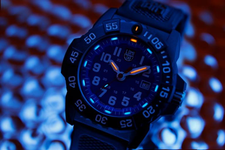 The dial features a multi-layered design with a 3D chapter ring for an added dimension. It has a cleaner layout and typeface that improves legibility. Coupled with a new contrast second-hand, the new design enables clear readability at a quick glance, especially useful for divers. The Luminox Light Technology (LLT) provides unmatched night visibility through a self-powered illumination system that lasts up to 25 years without requiring an exterior light source or the push of a button.