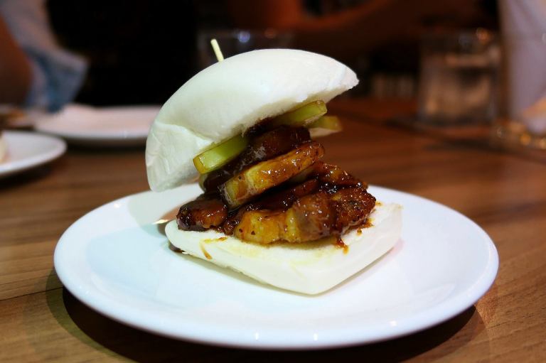 Caramelized pork belly, gula Melaka chilli syrup, pickled starfruit, steamed mantou bun