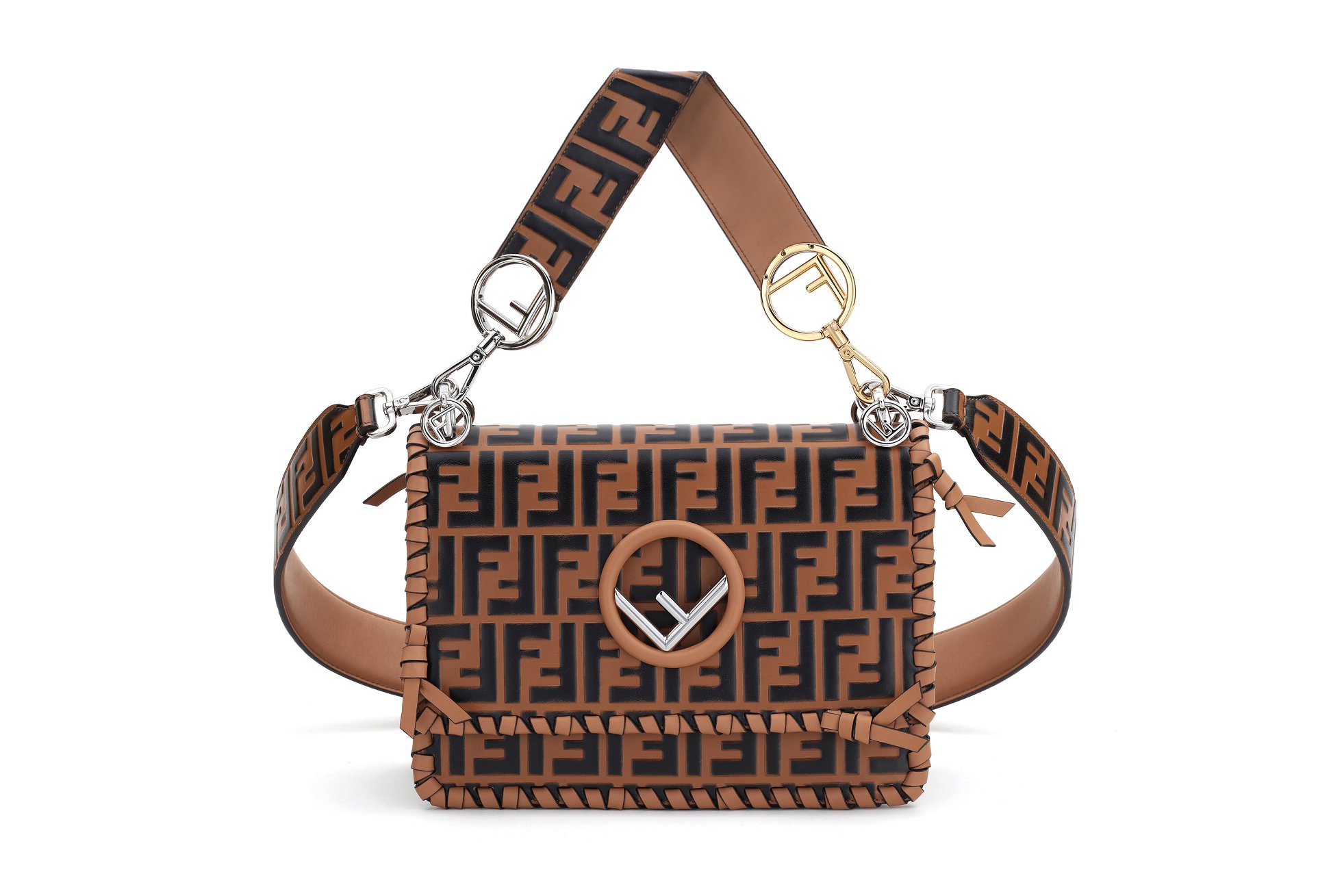 Korean Actress Go Joon Hee carrying the FF logo Kan I from the Fendi Spring Summer 18 collection which is retailing at MYR14,990.