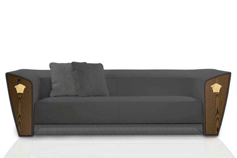 Via Monte Napoleone 11- 2 is home to the Versace boutique in the Milanese fashion district. A contemporary takes to a timeless classic design. Dark shades and bold shapes define the VM11-2 sofa characterized by the signature Medusa silhouette cast in gold leaf moon stone.
