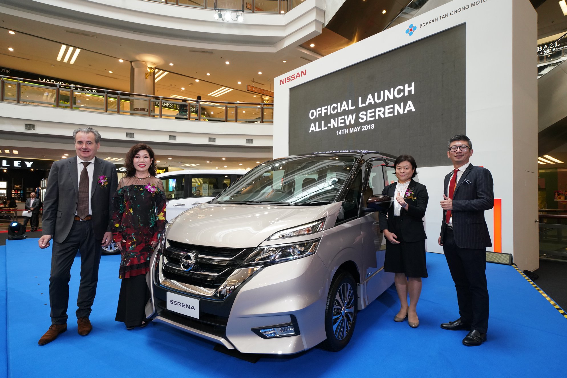 Edaran Tan Chong Motor Sdn Bhd (ETCM), the sole distributor and assembler of Nissan vehicles in Malaysia, launched the All-New Nissan Serena 2.0L S-Hybrid on 14 May 2018 at 1 Utama Shopping Centre in Petaling Jaya, Selangor. The All-New Nissan Serena S-Hybrid comes with a completely new design and sporty appearance, and is designed for greater comfort and space flexibility, while equipped with advanced safety features, and class-leading fuel economy. Two grades of the new Serena are available; the Premium Highway Star and Highway Star.