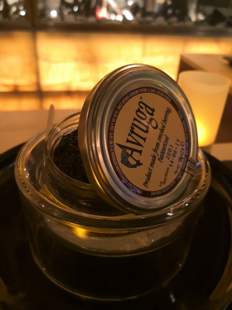 Salmon tartare topped with a generous amount of fish roe, with Chivas Regal 12 Y.O cocktails to start the evening.