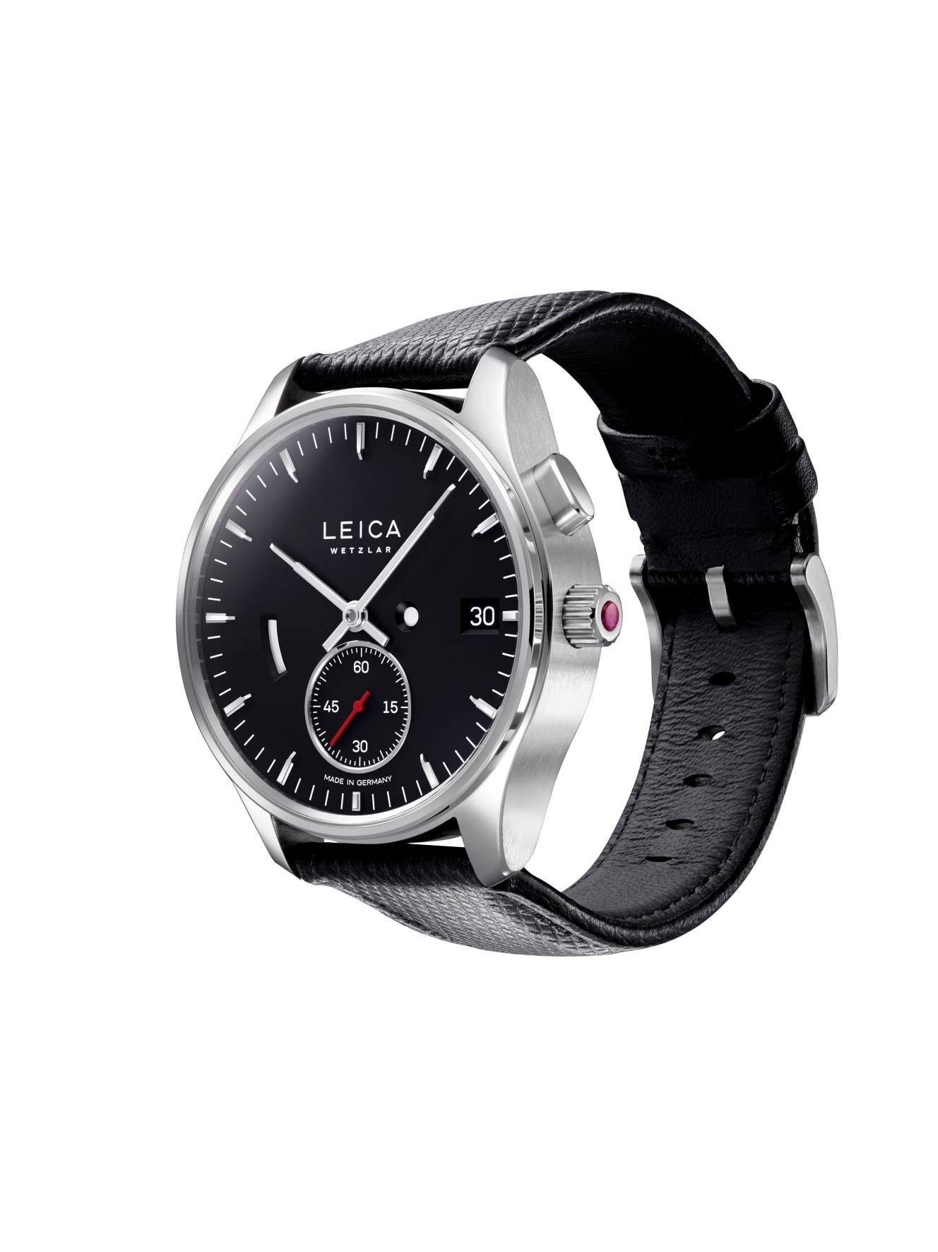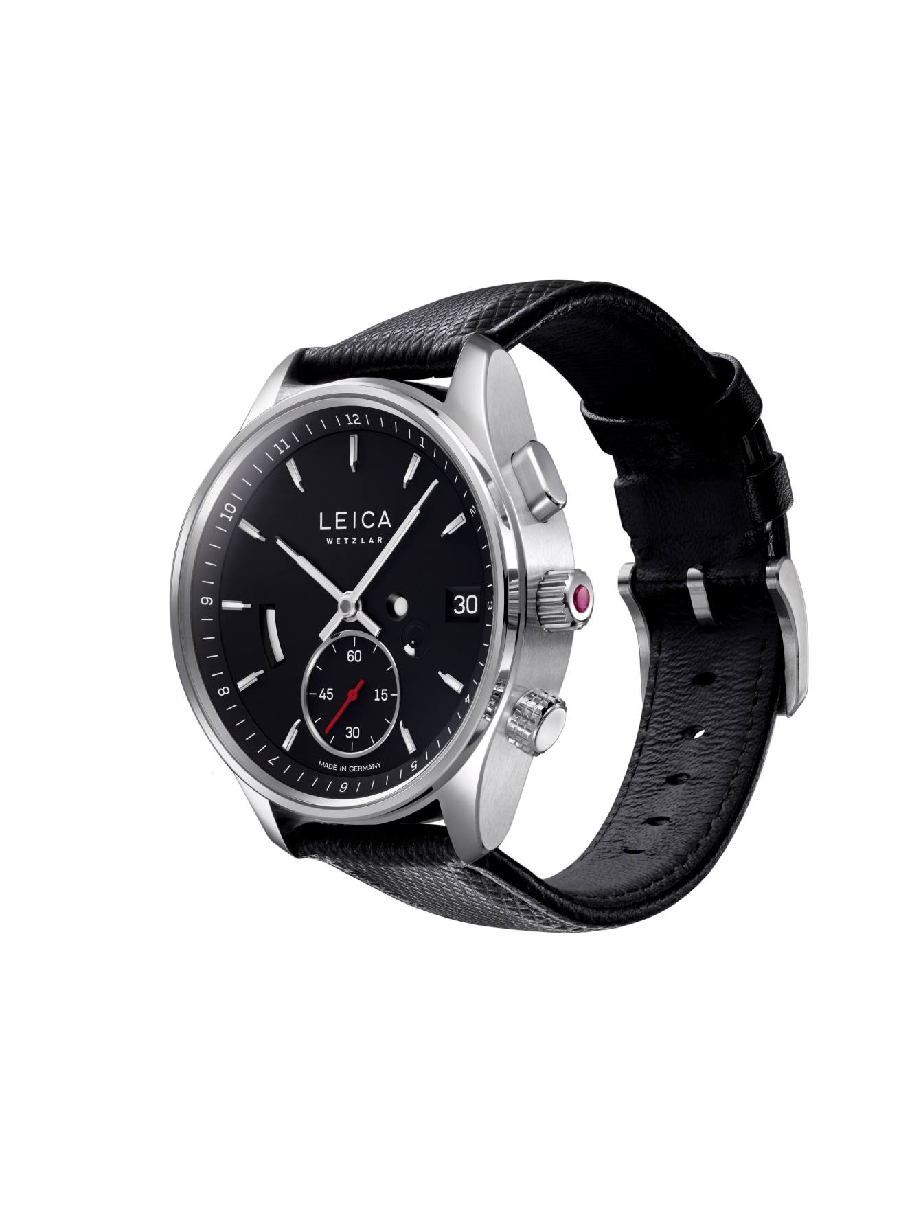 Design and technology are evident in the new Leica watches: both the front glass and the back-case-cover are made of scratch-resistant sapphire crystal, with the front being anti-reflective on both sides, and each model has the patented push-piece crown with a corresponding status display on the dial. The combination with the zero setting of the second-hand is another special feature – the crown is therefore not only aesthetically appealing, but also adds a useful function to the watches.