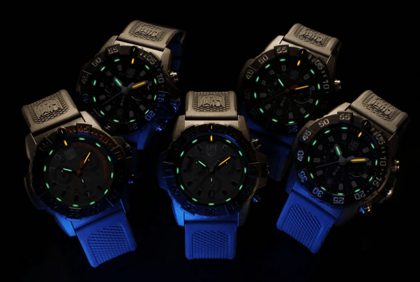 Navy SEALs, law enforcement, emergency personnel and more wear Luminox watches, and these professionals need to be able to see the time no matter the conditions. That’s why Luminox uses tiny tritium gas tubes, which will provide illumination for up to 25 years. Unlike other luminosity systems, which depend on exterior light sources to charge luminous paint or a pushbutton to illuminate the watch, the luminosity is built right into Luminox watches, ensuring that you will always be able to see the time, no matter the conditions.