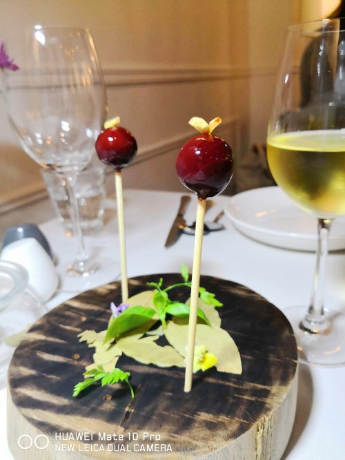 We started off the meal with the amuse bouche which was a cute foie gras lollipop with sour cherry jelly in the core. Now I love foie gras but I do know that it needs to go with something piquant/ sweet to keep it from becoming too cloyingly rich. This little lollipop was the bomb! Lovely earthy flavours of the foie gras with the cherry jelly. What an impressive start!