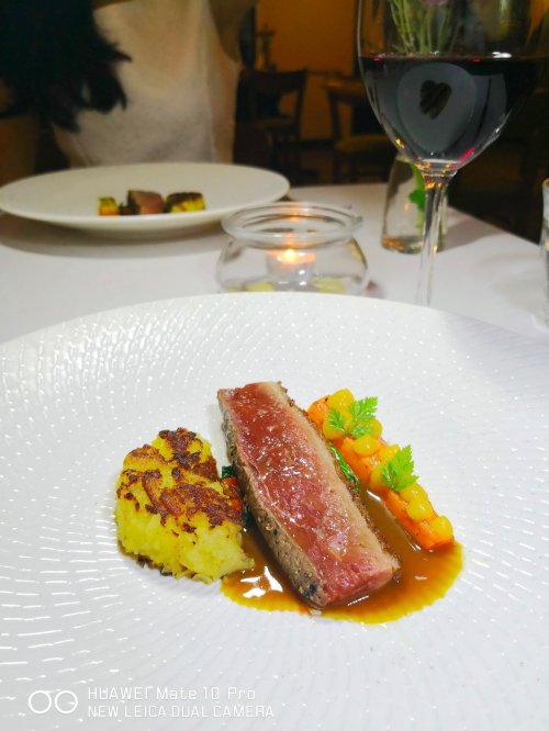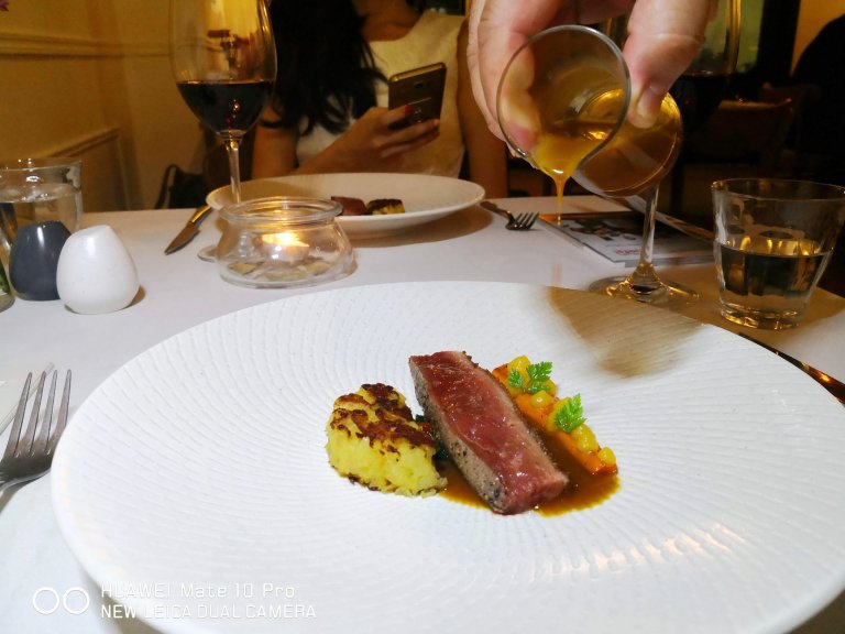 A gorgeous duck breast seared to perfection – retaining its juicy texture and earthy flavours, matched with an orange sauce which was poured tableside by Chef Gary himself. We had a French red wine to go with the duck breast, and it provided an extra dimension of flavours that gave the dish even more depth! The roasted carrot provided some sweet flavours to keep the palate fresh, while the rosti potato was soft without being mushy. With culinary skills like these, no wonder Chef Gary’s restaurant is a hit with expatriates!