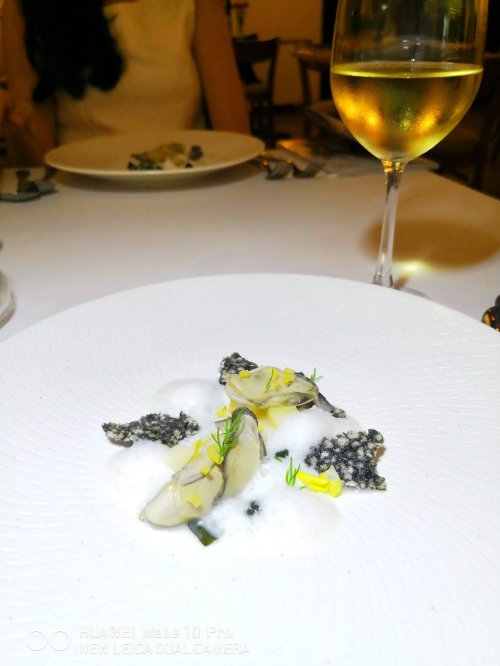 The lightly poached oyster with seaweed crisps providing a contrast in texture, with seawater foam, provided loads of umami flavours. The Riesling which I expected to be really sweet (fortunately it was not!) turned out to be rather dry and matched this starter beautifully! This was the most Insta-friendly dish of the festival menu at Champignons!