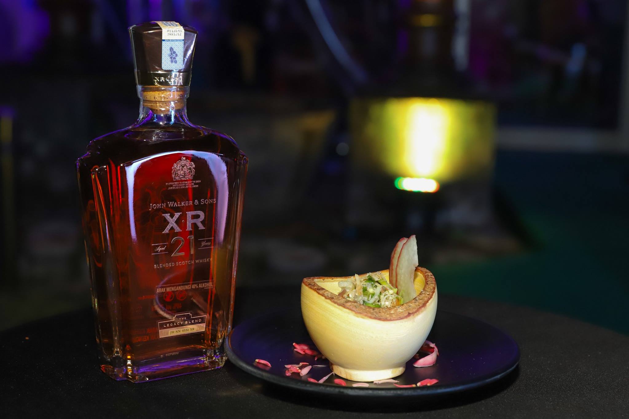 Continuing the journey of discovery with a gastronomical twist, XR 21 Mastery saw the presentation of the most authentic Penang cuisine, prepared by the best local street food vendors and crafted to perfection by esteemed chefs. First off, Pasembur canapes made of cucumber, jicama, tofu and deep fried fritters were served alongside Loh Bak canapes, which originates from Hokkien and Teochew style cuisine.Meticulously paired with John Walker & Sons XR 21, the seven-course dinner continued with a Pegaga Salad starter, where its ingredients were harvested from the southwest region of Penang Island, Balik Pulau, well-known as the state’s agricultural hub.Guests were then treated to a myriad of flavours with the pairing of John Walker & Sons XR 21 and a Wild Boar stew, which was concocted upon ten different types of herbs and roots used in traditional Chinese medicine for over 2,000 years.Unique to Penang, the first main course of the XR 21 Mastery was none other than the infamous Penang white curry mee, which possesses a lighter broth than the curry laksa usually found in Kuala Lumpur. Boasting an abundance of ingredients such as locally caught seafood, mints and coconut milk, the white curry mee brought about a titillating experience to the palate.Second main course of XR 21 Mastery saw Malaysia’s signature dish, Nasi Lemak served with a modern twist – pea flower coconut rice plated with a side of Penang pork sambal, acar and other staple condiments – a masterful presentation by culinary experts, Chef Andus Yeap, Managing Director and owner of HH+ by Haven Harbour and Chef Mark Ng, Co-founder of Simply Enak.Ending the course on a sweet note, exquisite traditional Malay and Chinese kuih such as kuih bengka, kuih lapis, pulut tai tai, kuih talam and Oolong Jasmine tea jelly were brought to the table. These Malaysian favourite snacks are usually enjoyed during breakfast and at traditional ceremonies and festivities.That evening, Brand Ambassador for Diageo Malaysia, Jeremy Lee also introduced guests to a limited edition blend, The 28 Year Old Midnight Blend. Crafted from the finest whisky casks of Johnnie Walker’s Private Collection, only 3,888 bottles were produced by Master Blender, Jim Beveridge. The 28 Year Old Midnight Blend exudes flavours which are in perfect harmony with notes of rich fruits, butterscotch and cream.