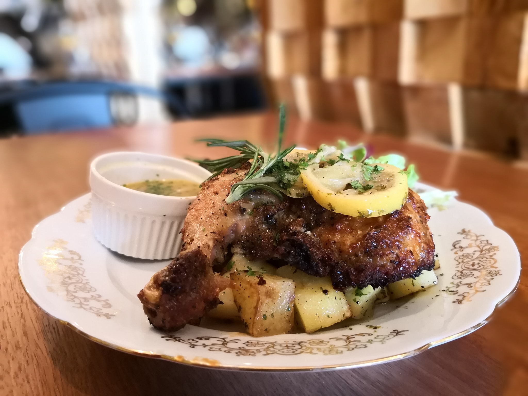 Rosemary Lemon Roast Chicken with roasted potatoes and hearty salad – RM19.90
