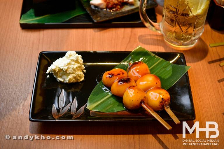 Lovely sweet mochi grilled and served with cream – rich, chewy and sweet at the same time! A truly decadent end to a wonderful Japanese meal!