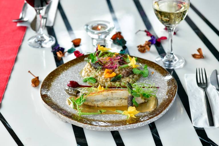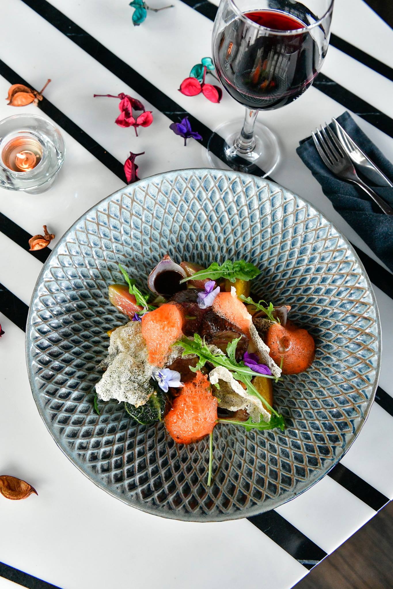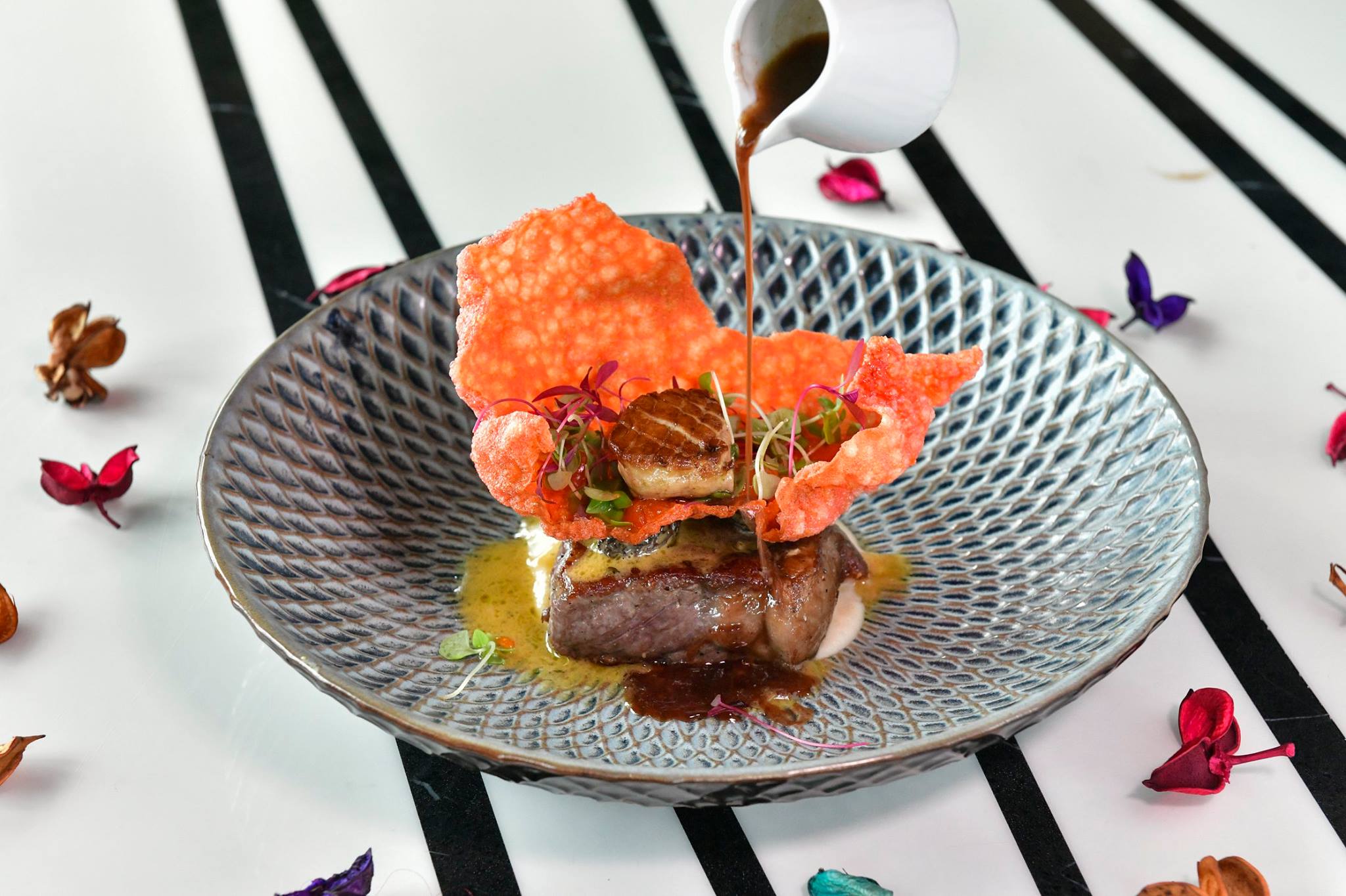 The dessert was served under a glass cloche for the added mystery and dramatic effect! Needless to say – girls will really appreciate this dainty and sweet ending to a really decadent meal. BTW do have your phones ready to make an Instagram boomerang post for this dish.