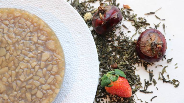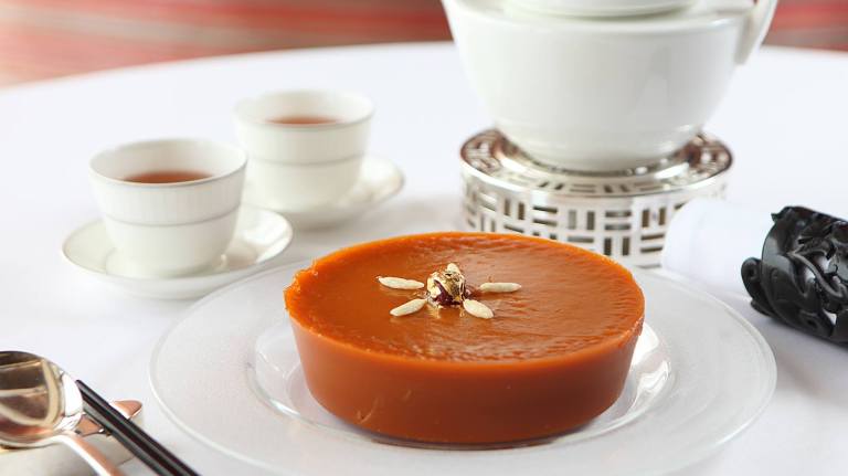 For the Year of the Pig, Chinese Executive Chef Chan Yan Tak and team bring a delightful twist to the traditional water chestnut pudding, infusing it with strawberry-lychee fruit tea. The green tea in the infusion adds a grassy balance to the sweet fruit for a refreshing, innovative dessert.