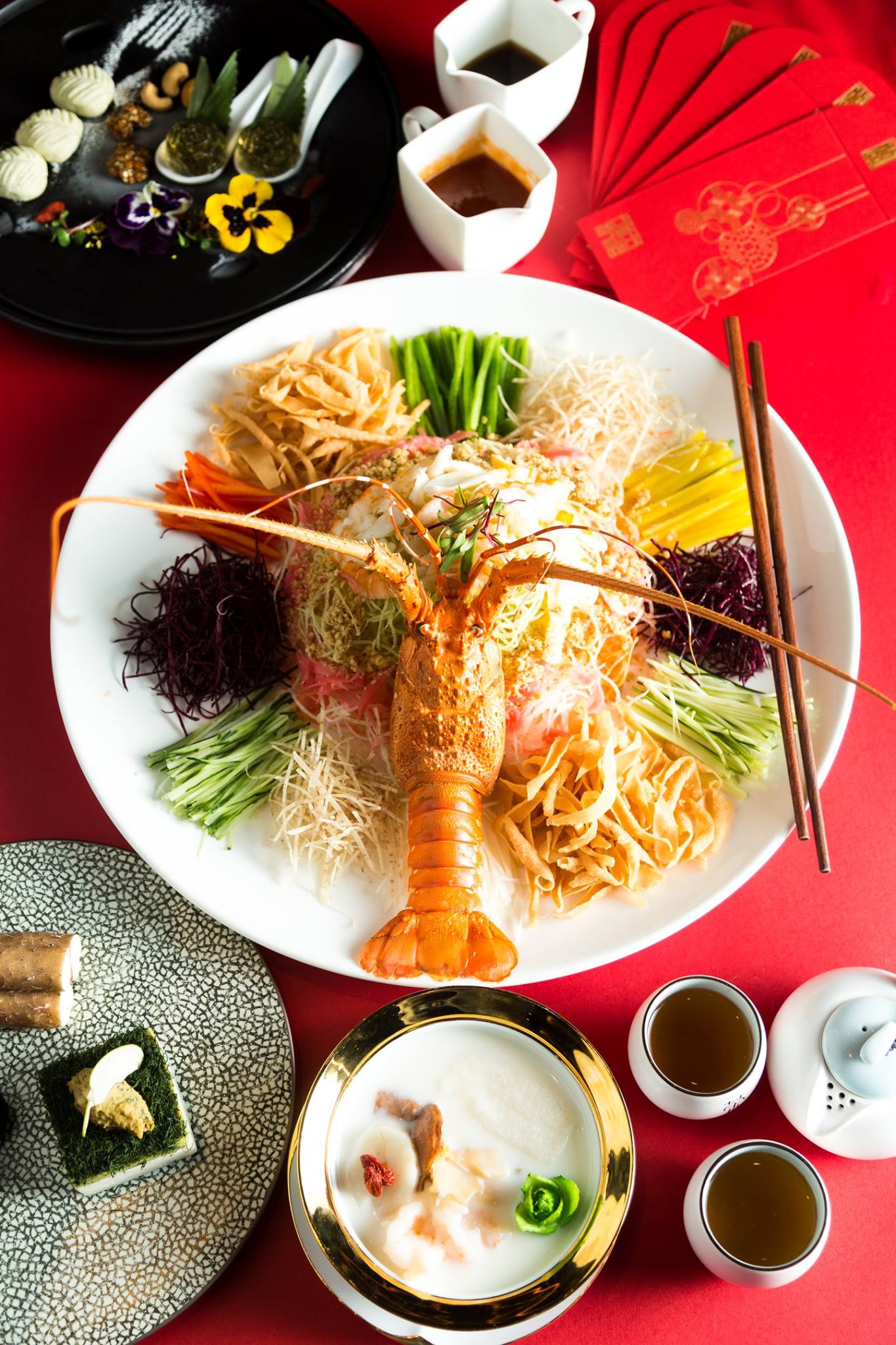 Toss to prosperity and abundance with fresh Australian lobster and abalone yu sheng (yee sang). Savour the natural textures and flavours of the daily sourced lobster and abalone, complemented by hand-shredded seasonal vegetables and homemade condiments and sauces. You could also opt to augment the lo hei with fresh, raw salmon slices.