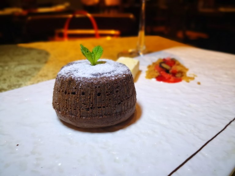 One word – DECADENT! A dark chocolate cake with a core of molten salted egg yolk “lava”. A very indulgent end to a hearty meal!