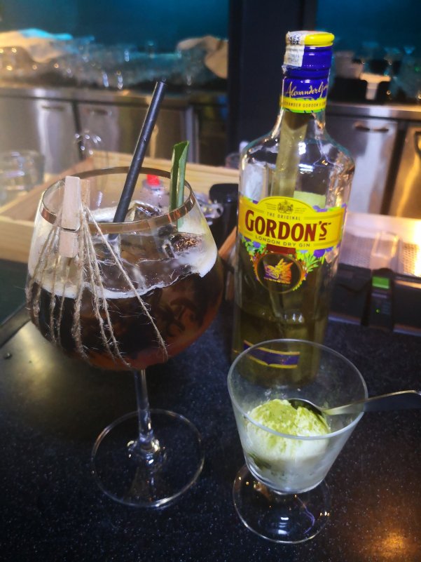 The third cocktail had cincau in it and was paired with a scoop of vanilla ice cream sprinkled with some matcha powder. As it was designed to be a dessert cocktail, it was rather sweet with strong flavours of the cincau and the pandan infused gin.