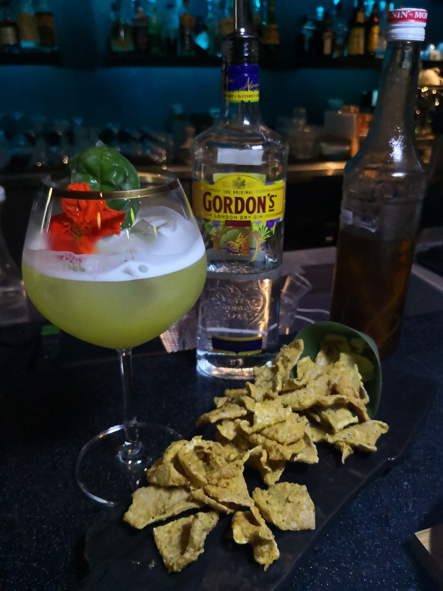 The first cocktail was fresh and piquant, perfectly contrasting against the “Golden Chicks” – fried chicken skin coated in salted egg yolk which are simply addictive. A nice, bright and cheery cocktail designed to kickstart the evening!