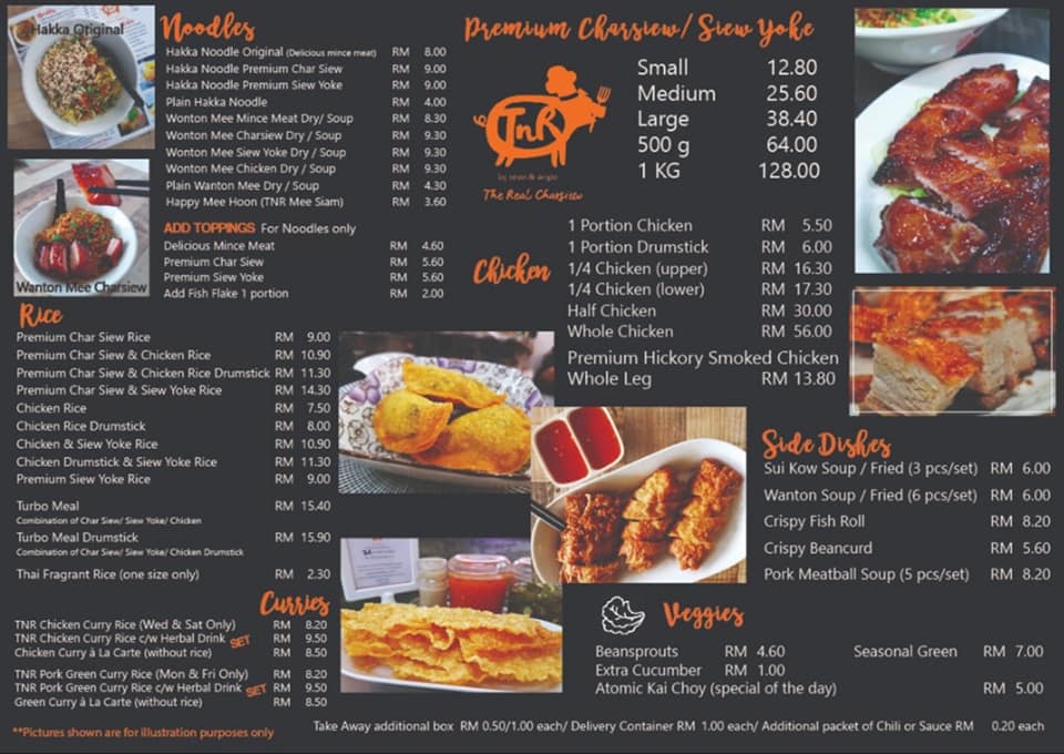 TNR provides charsiew that melts, Siew Yoke, Charsiew Chicken Rice, Hakka and Wonton Noodles and more. Delivery locations include Petaling Jaya, Subang, Sunway, Cheras, Sg.Buloh, Mont Kiara, Kepong, Damansara, Kuala Lumpur, Bukit Jalil, Puchong and more.