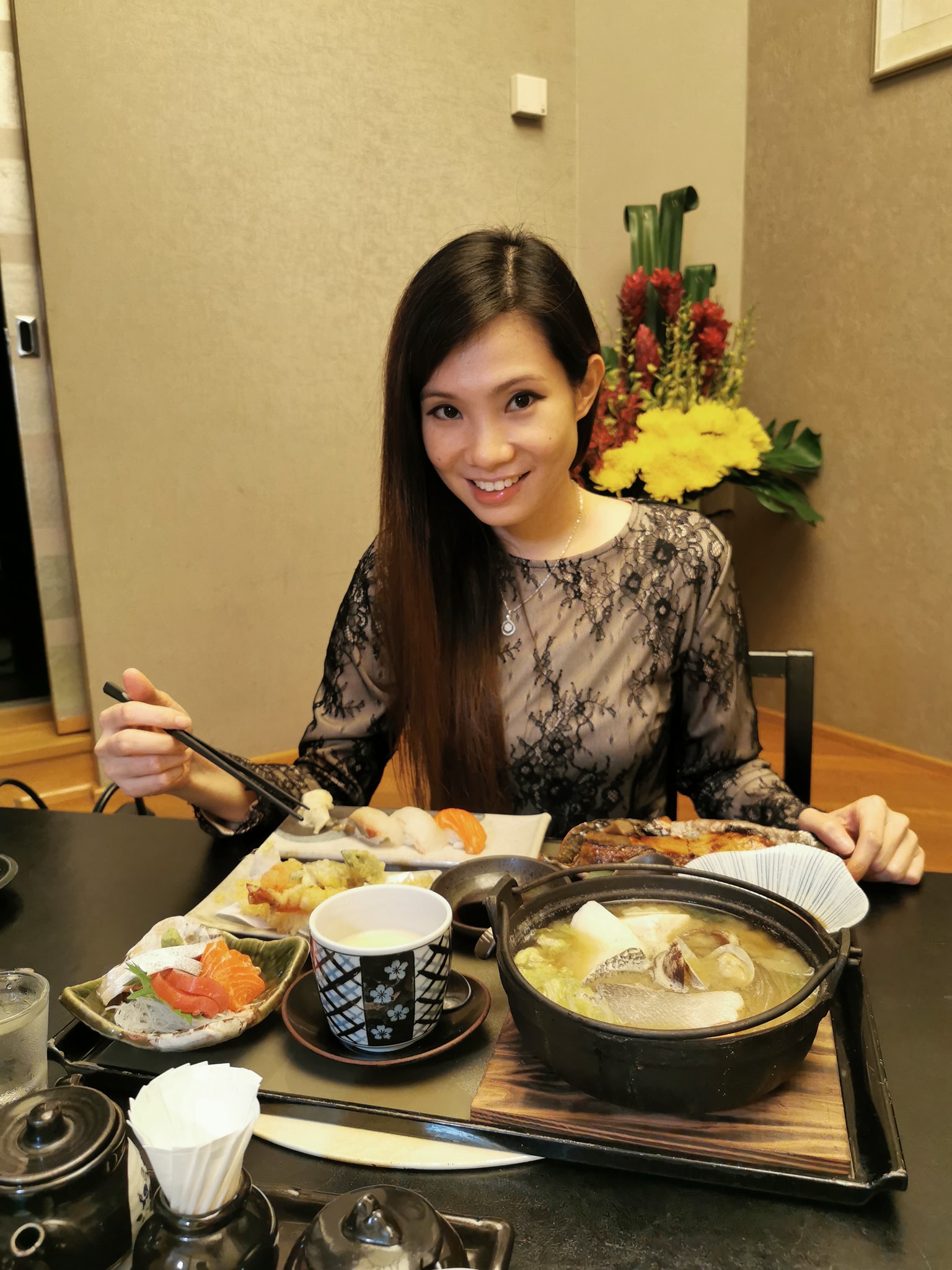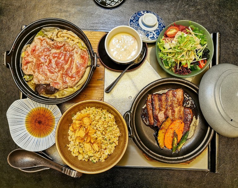 We tried both special 6-Course Japanese meals by Chef Masami Okamoto. The Kaisen Seafood menu includes Prawn Tempura, three kinds of Sashimi, and Grilled Cod Fish, while the Wagyu beef set includes Wagyu as Shabu-Shabu and a steak.