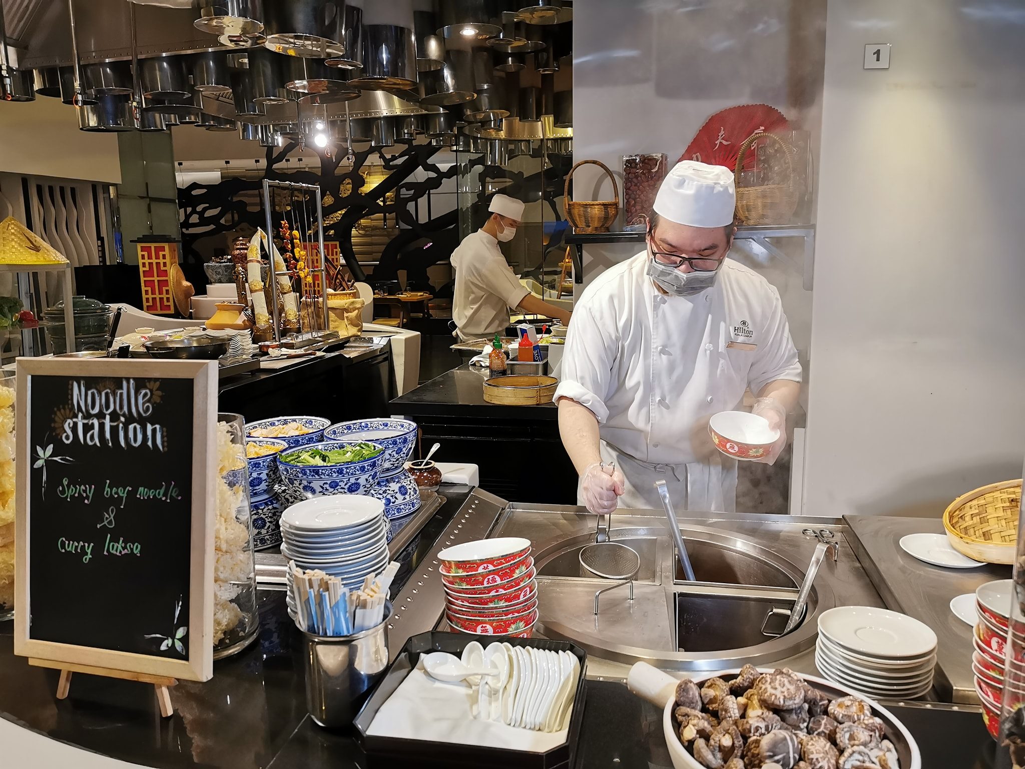 The noodle station serves Assorted Dim Sum, Steamed Bao, Curry Laksa with Slipper Lobster, Steam Seabass With Ginger Superior Sauce, and a really flavourful Spicy Wagyu Beef Noodle Soup.