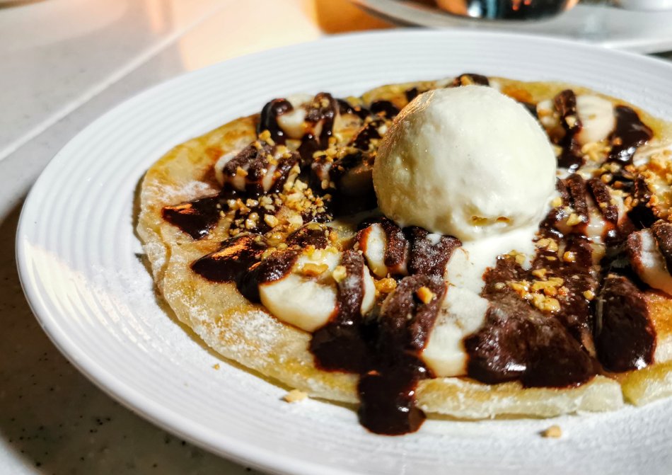 A roti prata (AKA roti canai in Malaysia) generously topped with Nutella, bananas and a scoop of vanilla ice cream. I can’t say not to Nutella so I had quite a bit of this dessert!