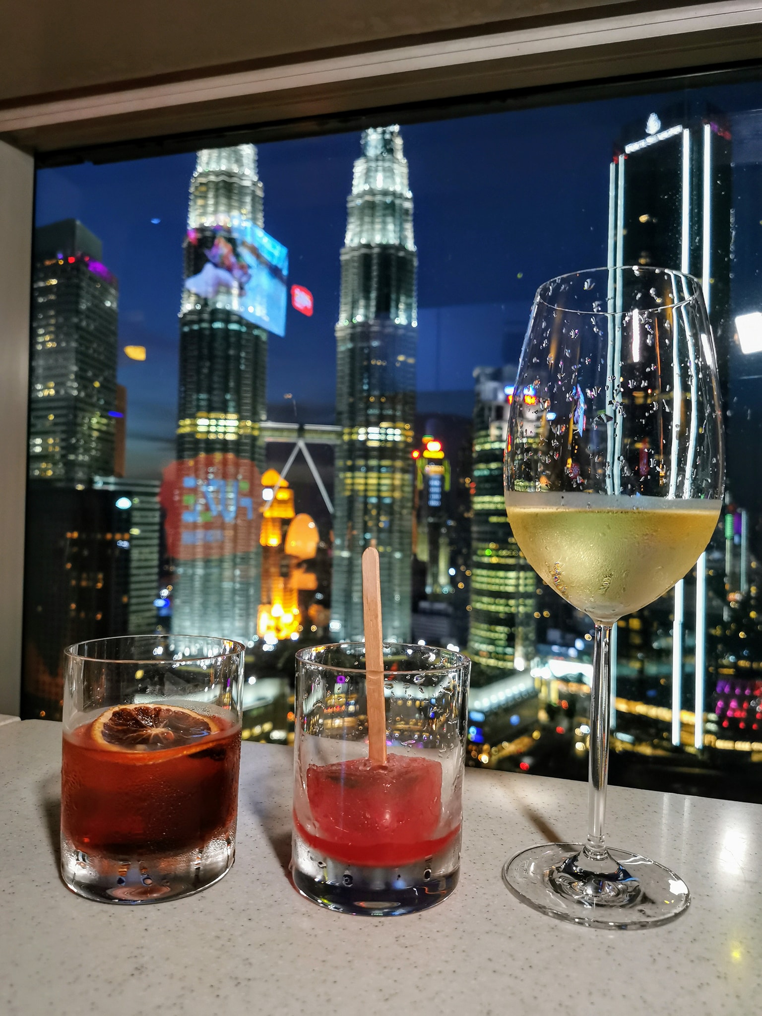 We got a table at the window facing the Petronas Twin Towers and watched as the colours of the Kuala Lumpur skyline changed as the sun set. (The number of tables facing the Petronas Twin Towers are very limited so I’d recommend that you book early and request for one.)