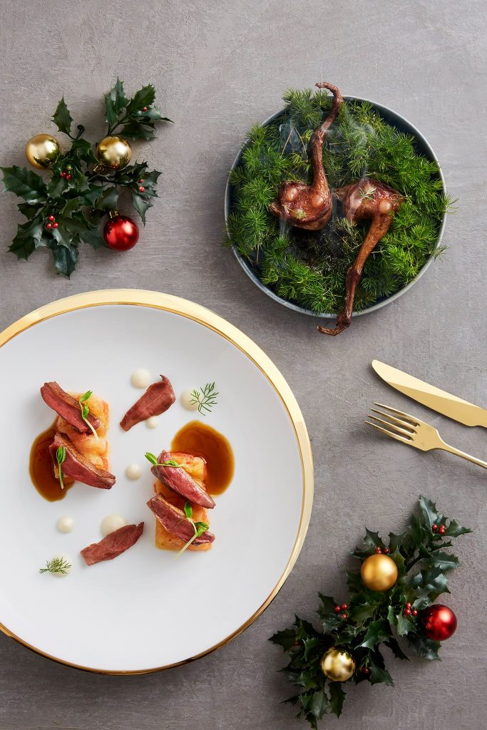 The Christmas Day in the Skies at Sabayon menu happens on 25 December 2020 from 12PM – 3PM. The 4-course dégustation menu includes torched otoro tartare, sweetbread cannelloni, guinea hen and foie gras or five-spice Christmas duck and a dessert course of port wine Sabayon. Priced at RM588 per adult, with a glass of Champagne Barons de Rothschild Brut.